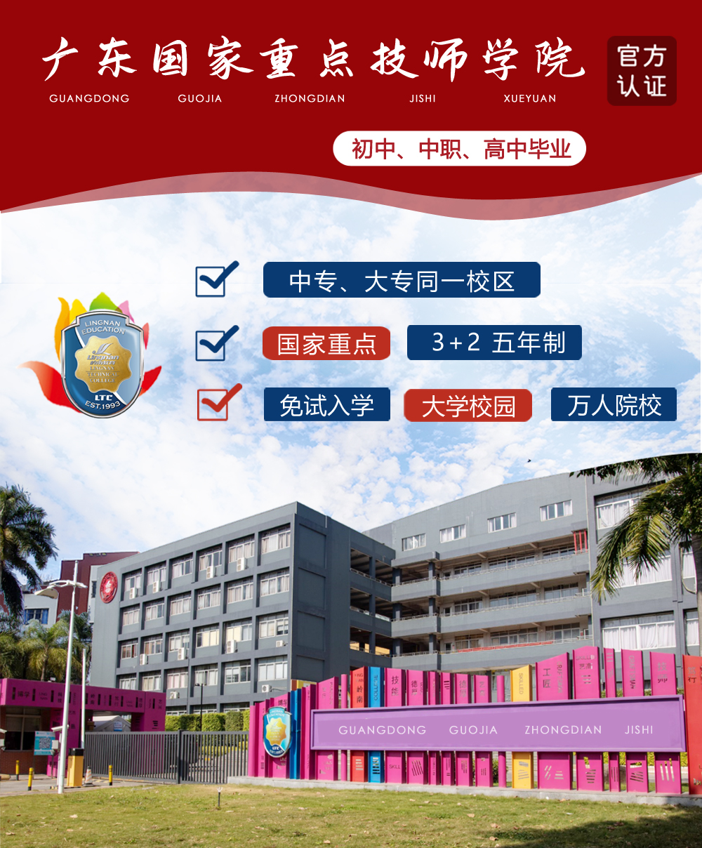 学院位于广州天河区,地铁口旁边,是广东省级师学院(中职最高级)。2007年晋升为省一类技工学校,2011年被评为国家重点高级技工学校,2014年晋升为高级技工学校,因办学管理质量好,于2019年经省人民政府批准,升格为技师学院。设有经济管理系、医药健康系、智能制造系、信息技术系、电子商务系、艺术设计系六大系,开设专业30余个,在校生近7000余人。